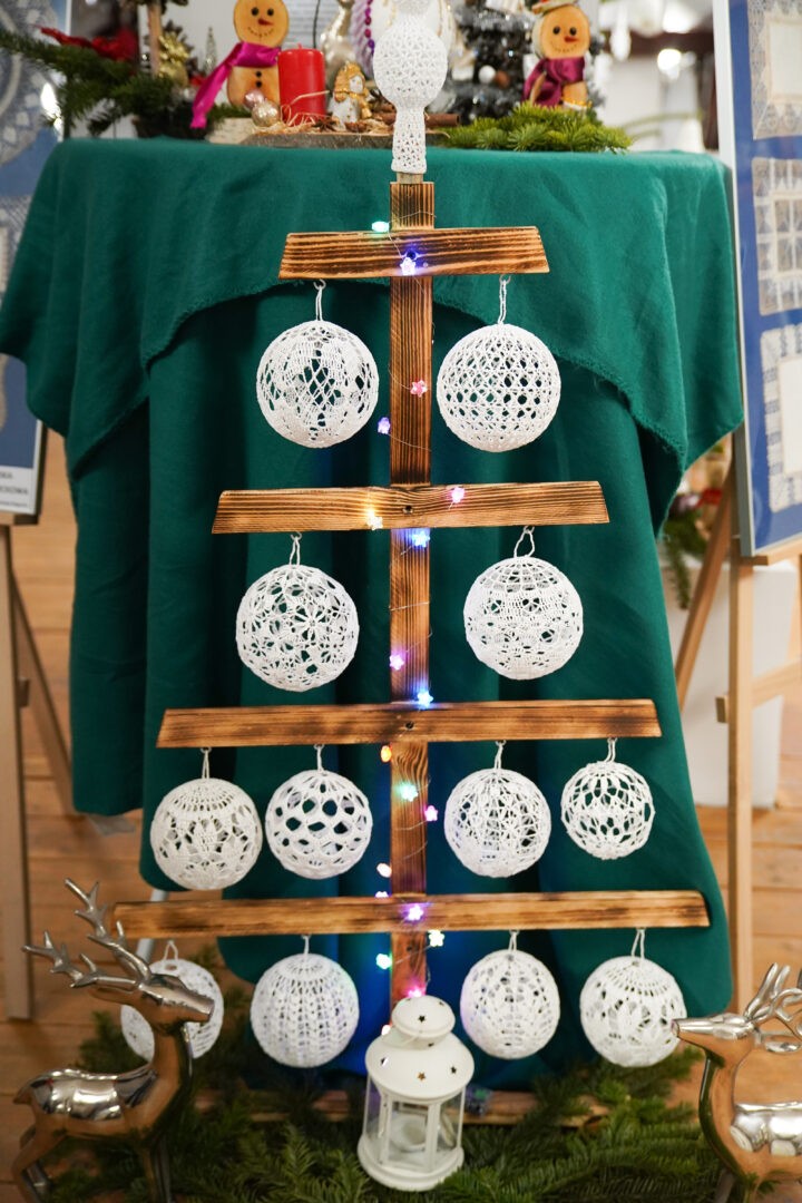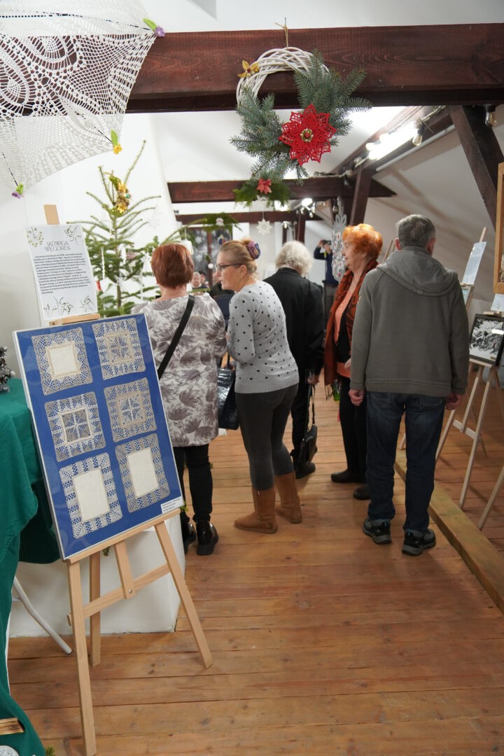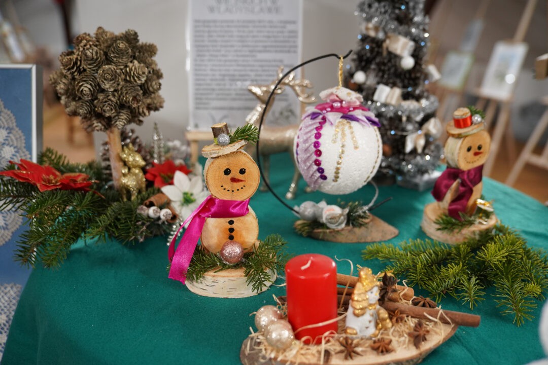 „ŚwarneKobitki” zaprezentowały również misternie wykonane szydełkowe ozdoby choinkowe oraz stroiki i dekoracje bożonarodzeniowe, wprowadzając odwiedzających w klimat nadchodzących świąt.