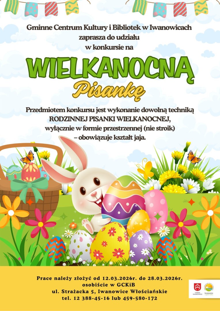 Gminne Centrum Kultury i Bibliotek w Iwanowicach serdecznie zaprasza do udziału w konkursie na 𝐖𝐢𝐞𝐥𝐤𝐚𝐧𝐨𝐜𝐧𝐚̨ 𝐏𝐢𝐬𝐚𝐧𝐤𝐞̨.