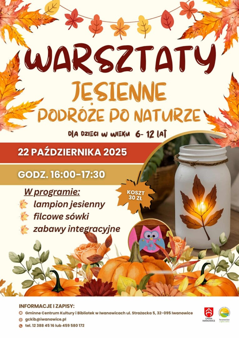 22 października 2025 r. w GCKiB od 16:00 do 17:30 odbędą się wyjątkowe warsztaty „𝑱𝒆𝒔𝒊𝒆𝒏𝒏𝒆 𝒑𝒐𝒅𝒓𝒐́𝒛̇𝒆 𝒑𝒐 𝒏𝒂𝒕𝒖𝒓𝒛𝒆” dla dzieci w wieku 6–12 lat.