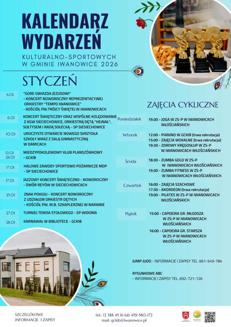 Kalendarz wydarzeń kulturalno-sportowych w Gminie Iwanowice – styczeń 2026 r. 2 stycznia 2026 | Informacje