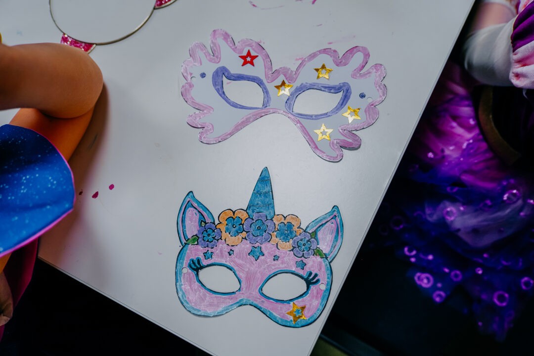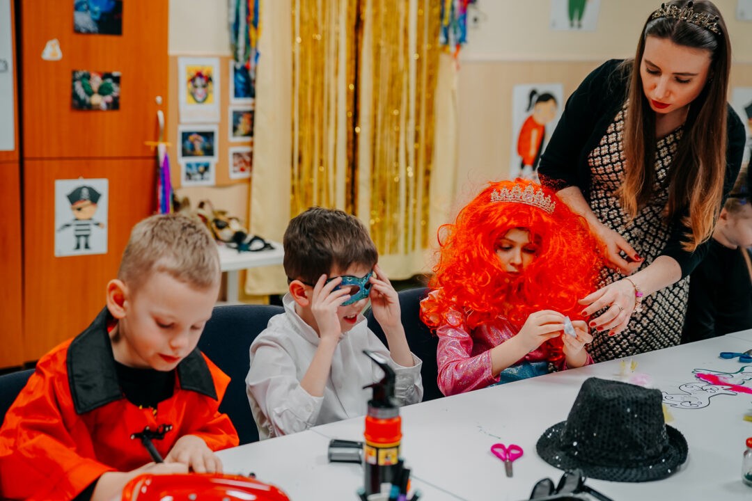 Następnie przeszliśmy do wykonania własnych masek karnawałowych. Wszystkie dzieci z zapałem tworzyły piękne