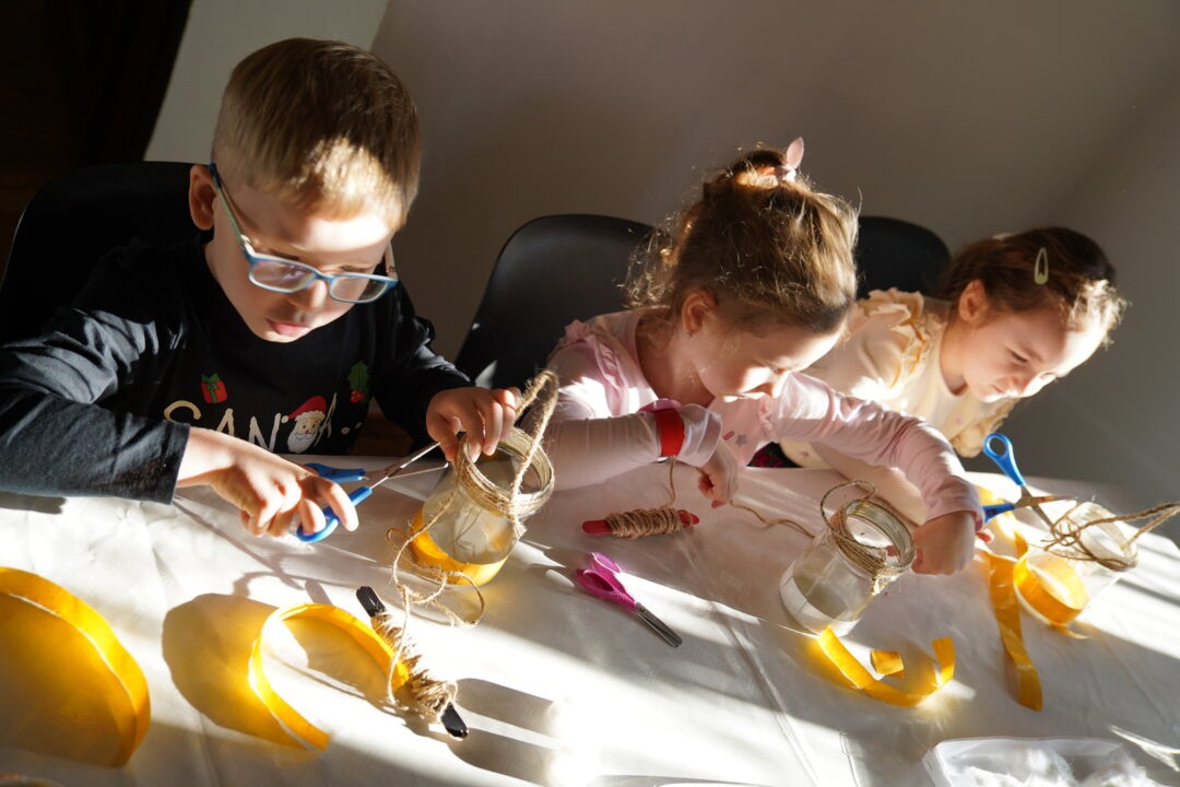Z pomocą pośpieszyły panie nauczycielki, które wytrwale pracowały nad śmietaną, podczas gdy najmłodsi tworzyli piękne lampiony adwentowe. Mamy nadzieję, że tradycyjne lampiony wykonane własnoręcznie przez dzieci również dziś znajdą swoje zastosowanie.