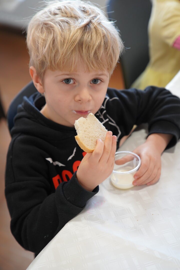 Po tak intensywnej pracy każdy mógł spróbować świeżo ubitego masła na chlebie – smakowało wybornie!