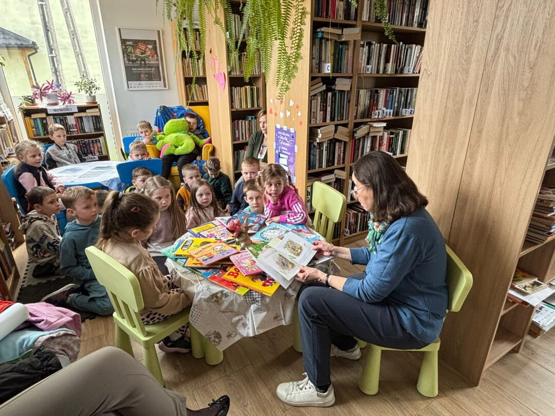 W słoneczne przedpołudnie 16 kwietnia 2026 r. w filii GBP w Sieciechowicach odbyły się 2 lekcje biblioteczne w ramach 𝐌𝐢𝐞̨𝐝𝐳𝐲𝐧𝐚𝐫𝐨𝐝𝐨𝐰𝐞𝐠𝐨 𝐃𝐧𝐢𝐚 𝐊𝐬𝐢𝐚̨𝐳̇𝐤𝐢 𝐝𝐥𝐚 𝐃𝐳𝐢𝐞𝐜𝐢.