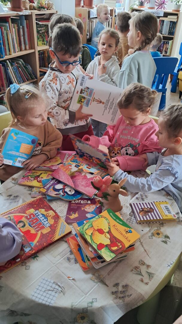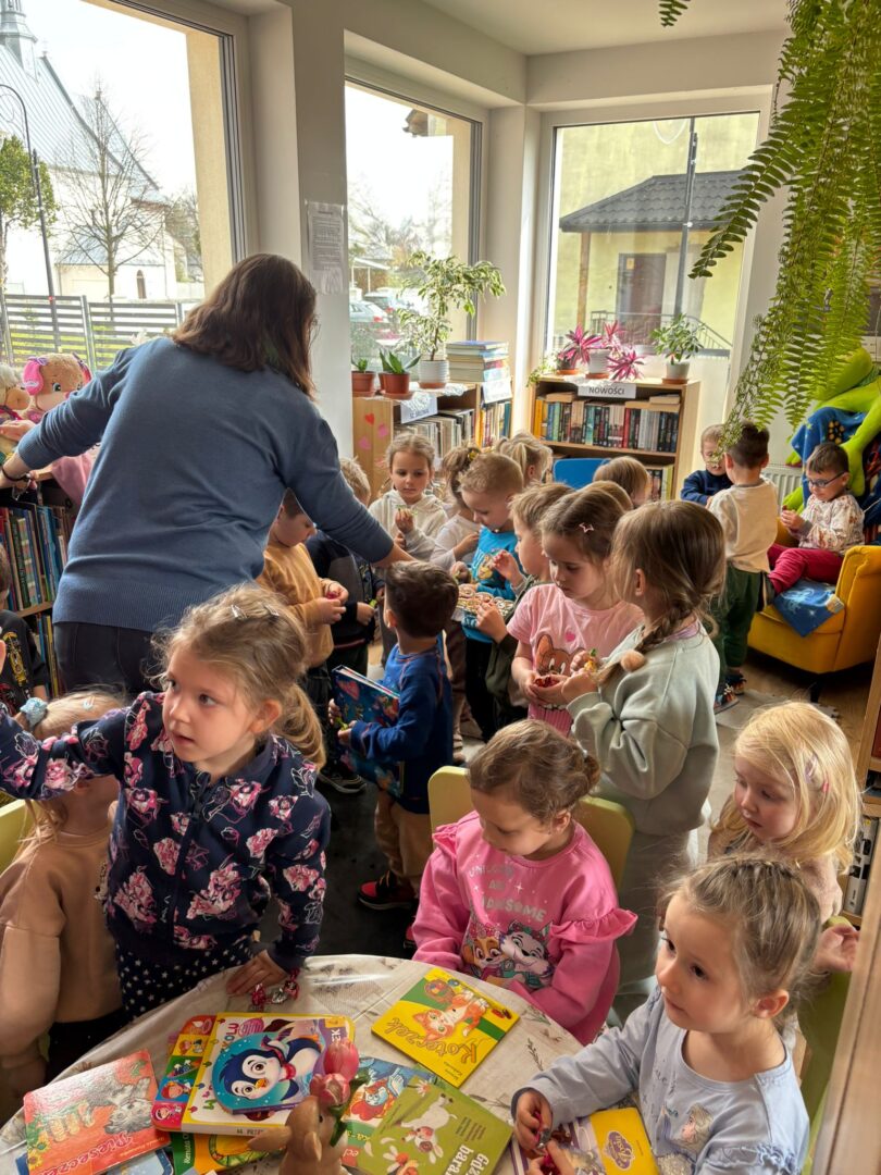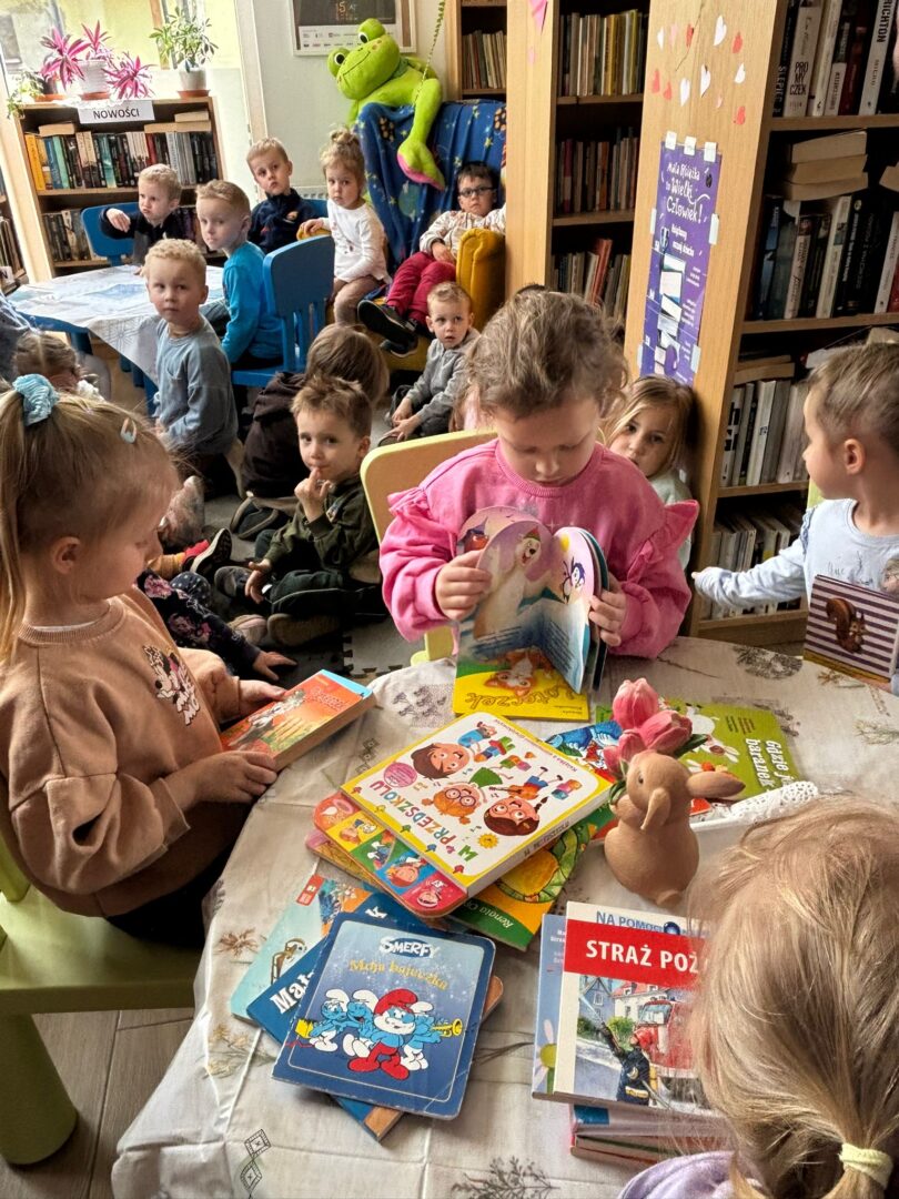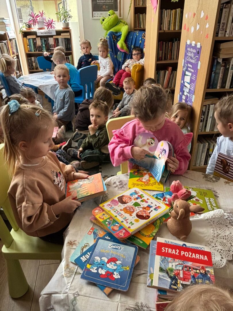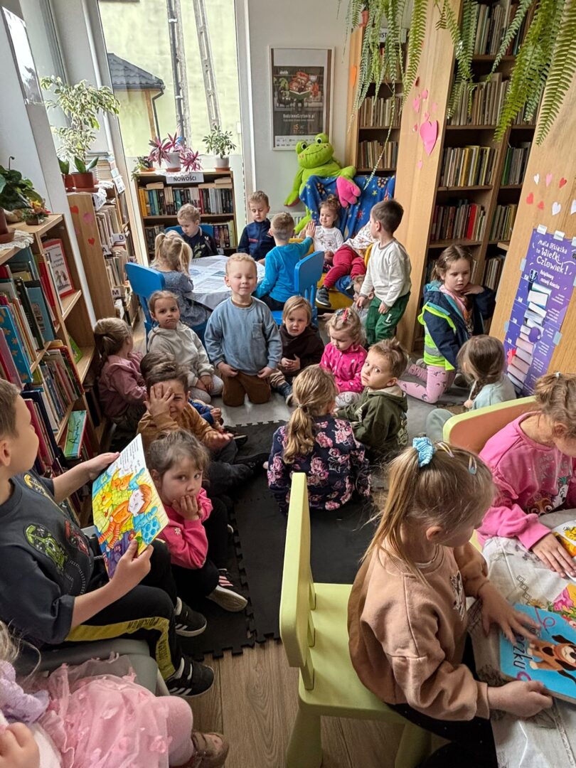 Dwie grupy Przedszkolaków zapoznały się z zasadami funkcjonowania i korzystania z biblioteki, z projektem „𝑴𝒂ł𝒂 𝑲𝒔𝒊𝒂̨𝒛̇𝒌𝒂 – 𝑾𝒊𝒆𝒍𝒌𝒊 𝑪𝒛ł𝒐𝒘𝒊𝒆𝒌”, a także rozmawialiśmy o tym, jak należy obchodzić się z książkami.