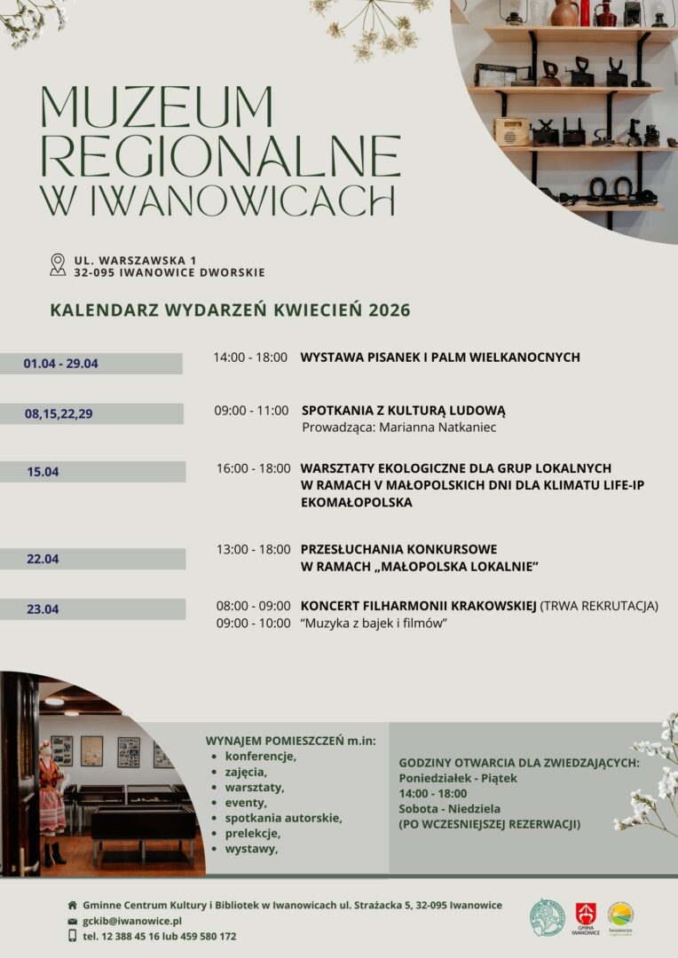 Kalendarz wydarzeń – marzec 2026 w Muzeum Regionalnym w Iwanowicach!