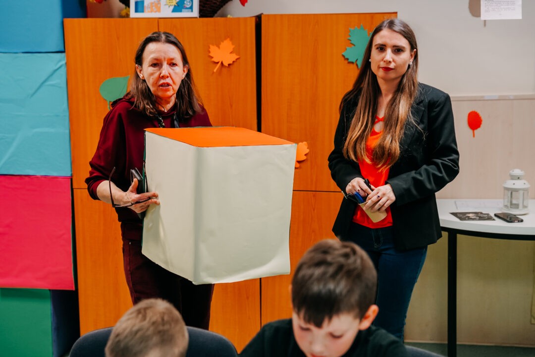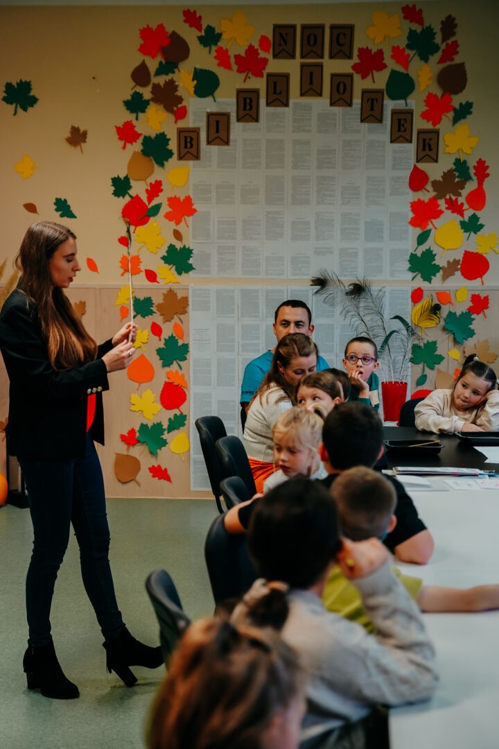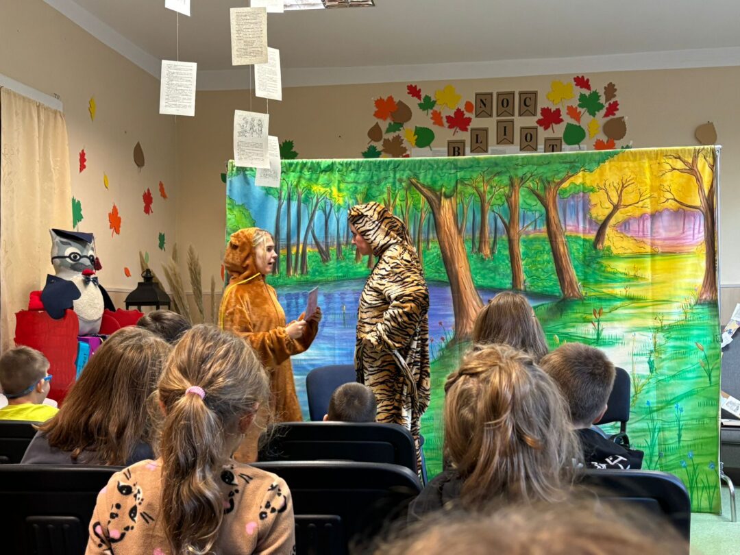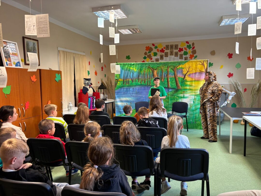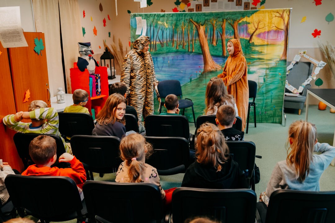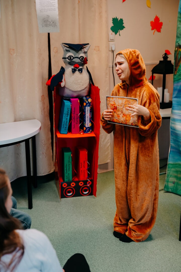 Spotkanie rozpoczęliśmy spektaklem „𝑾𝒚𝒐𝒃𝒓𝒂𝒛́𝒏𝒊𝒂 𝒄𝒛𝒆𝒌𝒂 𝒖𝒌𝒓𝒚𝒕𝒂 𝒘 𝒃𝒊𝒃𝒍𝒊𝒐𝒕𝒆𝒌𝒂𝒄𝒉” w wykonaniu Teatru Edukacji