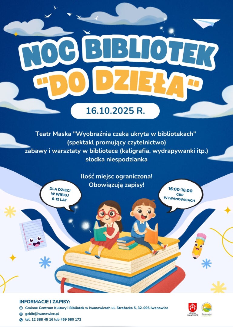 16 października 2025 r. zapraszamy wszystkie dzieci w wieku 6–12 lat na wyjątkowy wieczór w bibliotece!