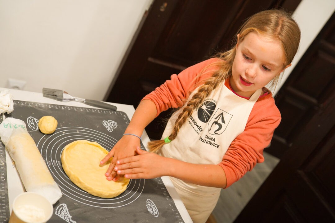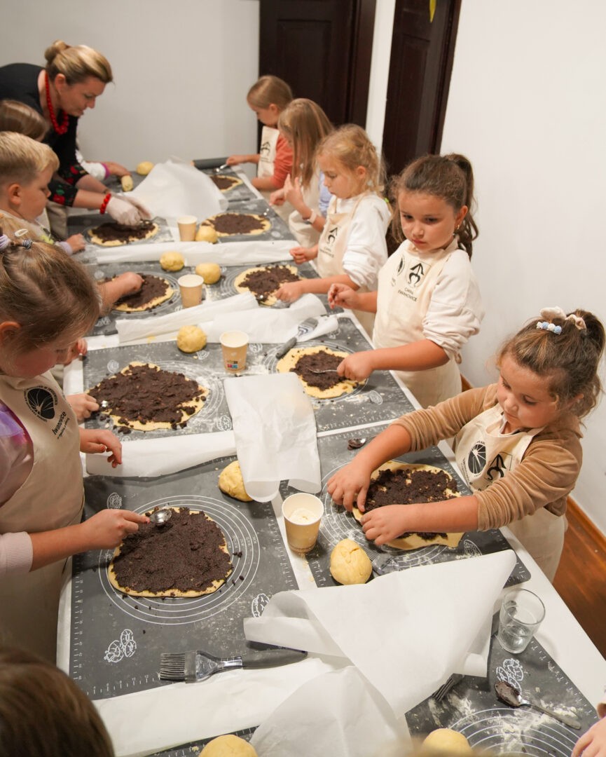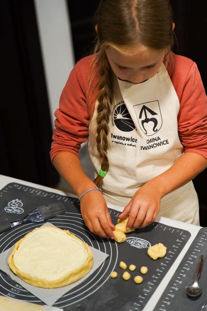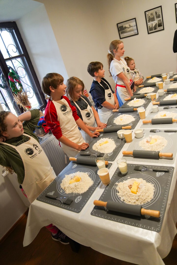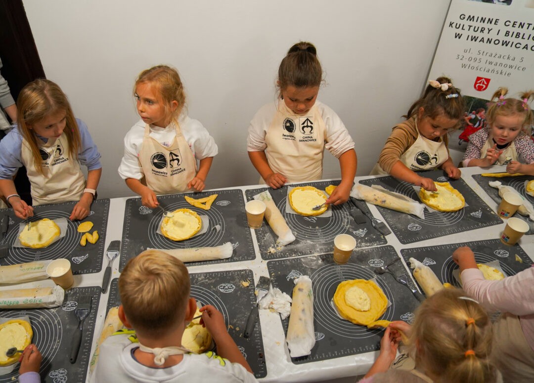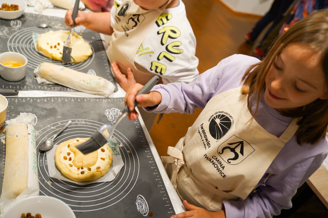 25 września 2025 roku w Muzeum Regionalnym w Iwanowicach odbyło się kolejne, już trzecie spotkanie w ramach warsztatów kulinarno-edukacyjnych dla dzieci – „Kurs na małego piekarza”. Tym razem uczestnicy mieli okazję poznać sekrety wypieku kołaczy i strucli, a także dowiedzieć się, dlaczego ich kształty mają szczególne znaczenie dla herbu Gminy Iwanowice.