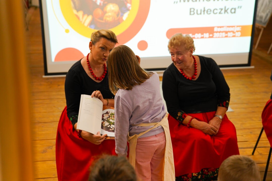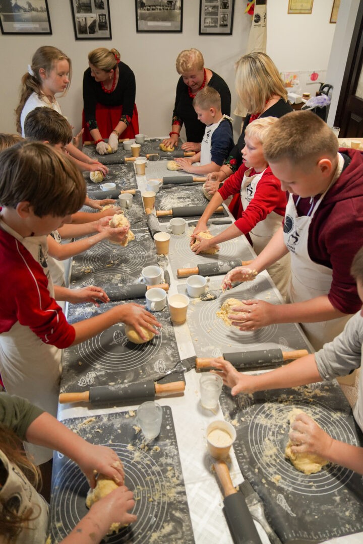 Podczas zajęć nie zabrakło również prelekcji historycznej o dawnych recepturach, które powstały we współpracy z lokalnym KGW i zostały utrwalone w Książce Kucharskiej Gminy Iwanowice. Na zakończenie warsztatów wykonaliśmy pamiątkowe zdjęcia, które pozwolą zachować na dłużej te wyjątkowe chwile.