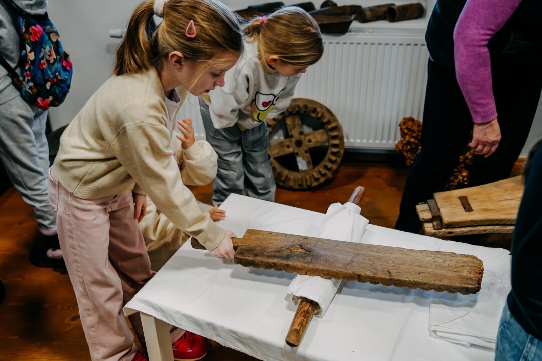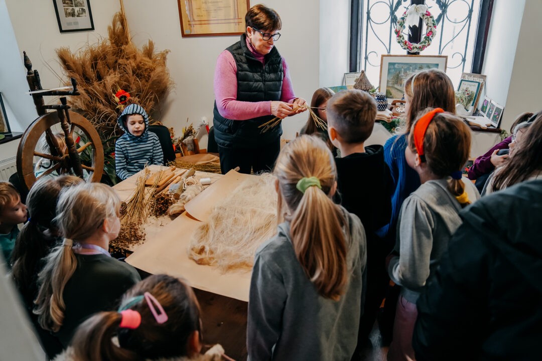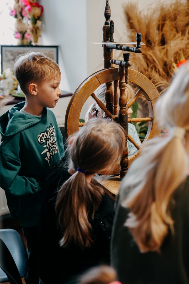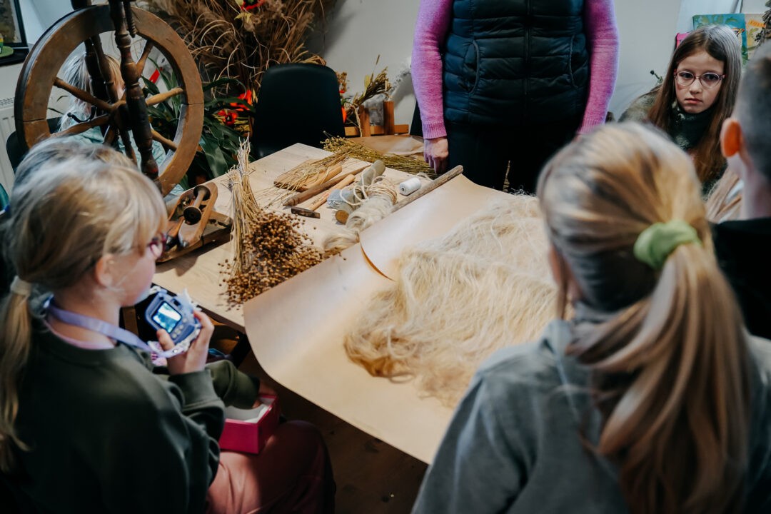 Uczniowie klas drugich mieli możliwość zapoznania się ze wszystkimi ekspozycjami muzealnymi, zwiedzili wystawę rzeźby Marka Dryniaka, jak również z wielkim zainteresowaniem uczestniczyli w procesie obróbki lnu celem uzyskania nici tkackich.