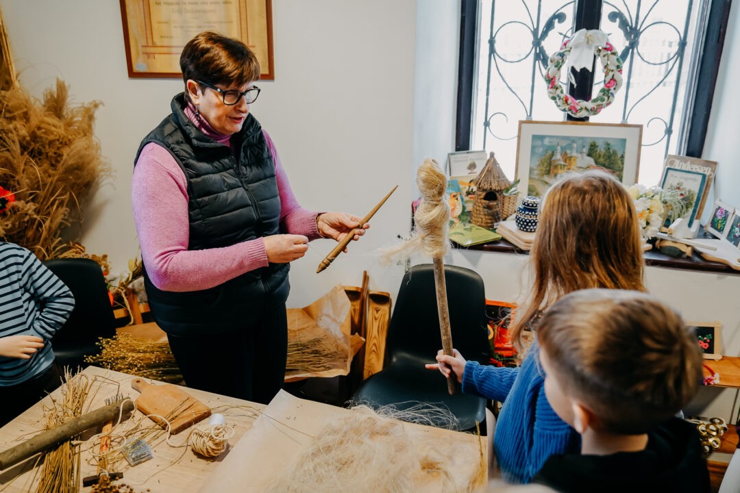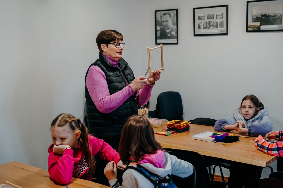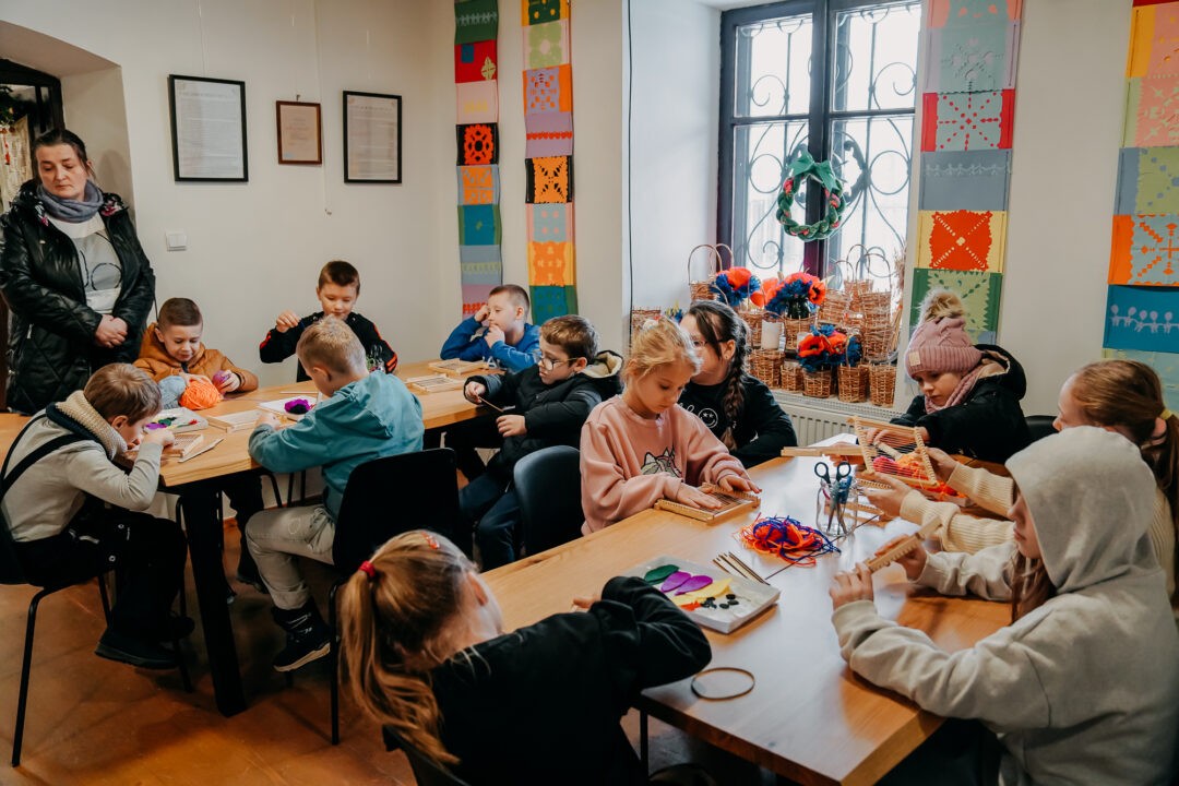Tematem spotkania było zapoznanie się z trudną sztuką 𝐭𝐤𝐚𝐧𝐢𝐚 𝐝𝐲𝐰𝐚𝐧𝐢𝐤𝐨́𝐰 𝐧𝐚 𝐩𝐫𝐨𝐰𝐢𝐳𝐨𝐫𝐲𝐜𝐳𝐧𝐲𝐜𝐡 𝐤𝐫𝐨𝐬𝐧𝐚𝐜𝐡, obrazujących dawny zwyczaj rękodzieła ludowego i artystycznego.