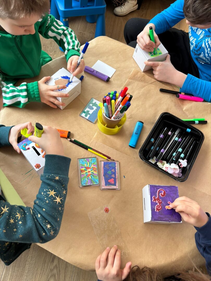 We 𝐰𝐭𝐨𝐫𝐞𝐤 tworzenie własnych magnesów zabrało dzieciom sporo czasu. Drugim punktem zajęć było ozdabianie kolorowych skarbonek. Magnesy i skarbonki na końcu wyglądały pięknie i zachwycały pomysłowością wykonawców.