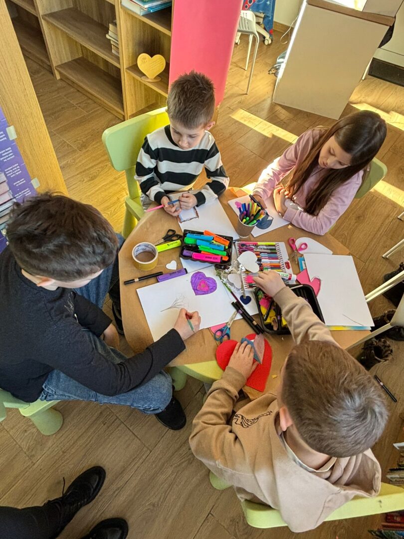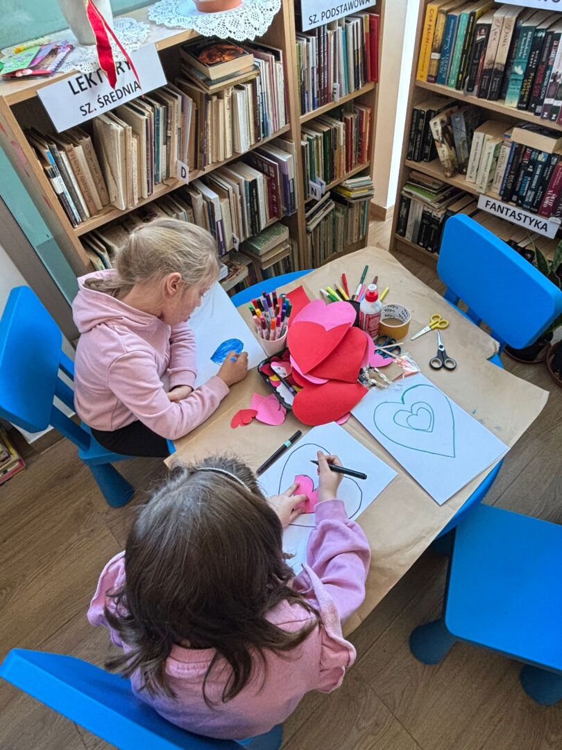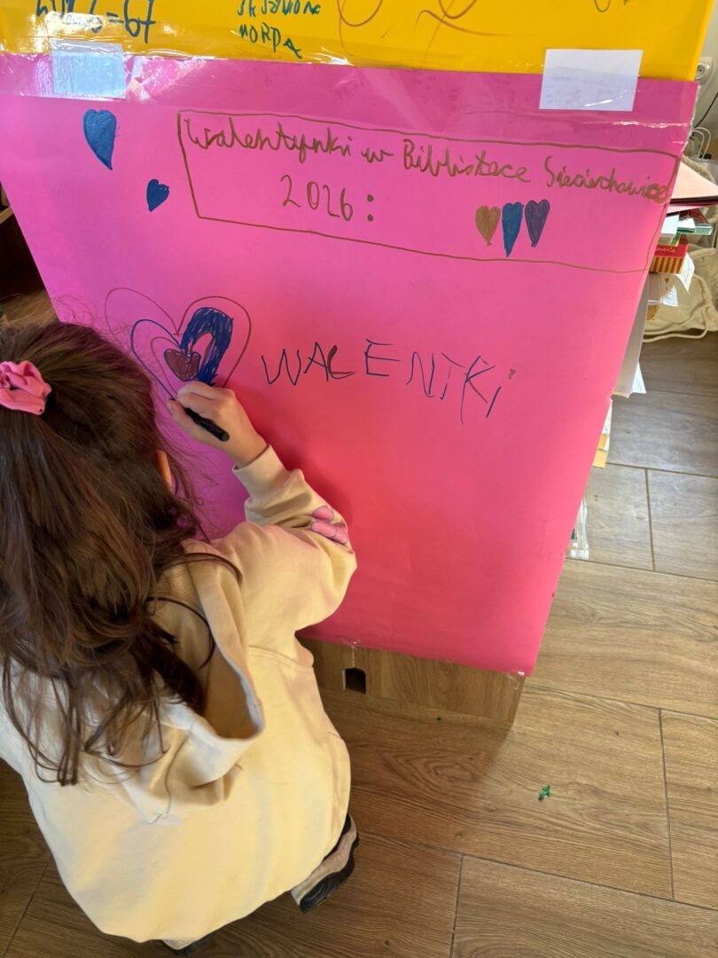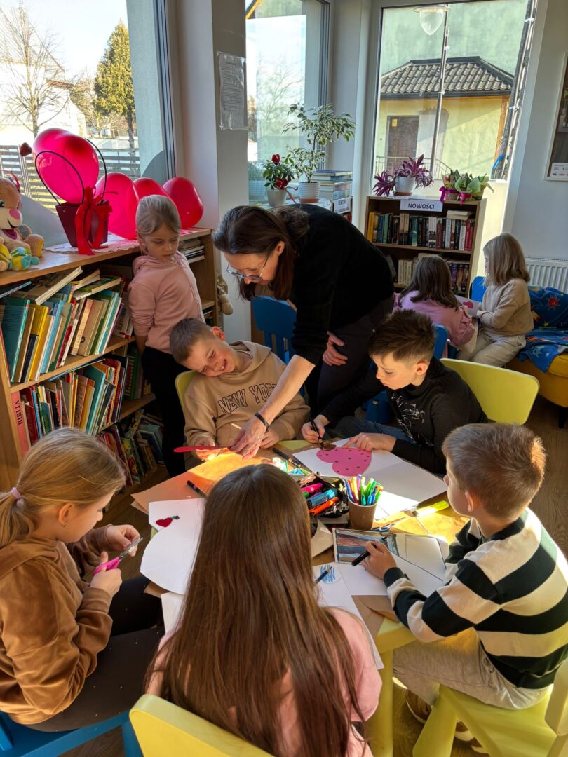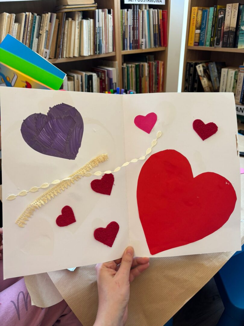 𝐏𝐢𝐚̨𝐭𝐞𝐤 był ostatnim dniem warsztatów – tworzyliśmy serca walentynkowe. Dzieci wykonały piękne prace i napisały życzenia dla swoich bliskich. Ozdobiliśmy też bibliotekę serduszkami, tworząc wyjątkową atmosferę. Uczestnicy brali udział w „𝑹𝒂𝒏𝒅𝒄𝒆