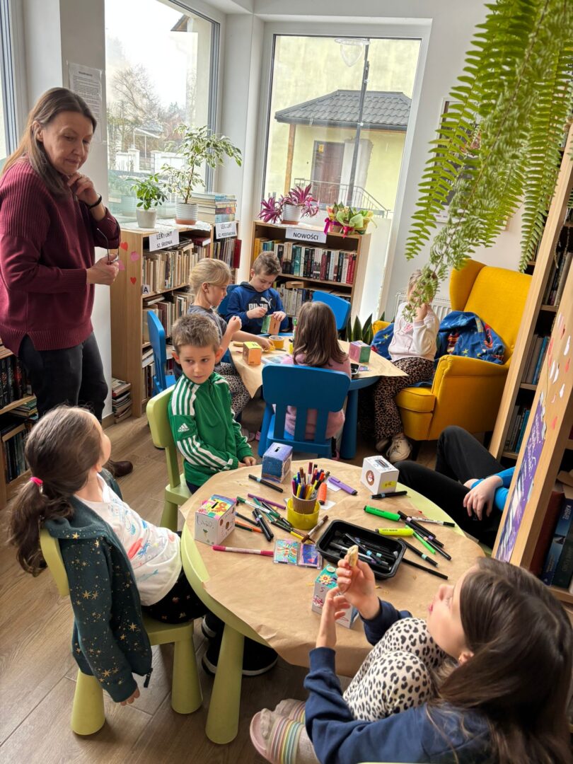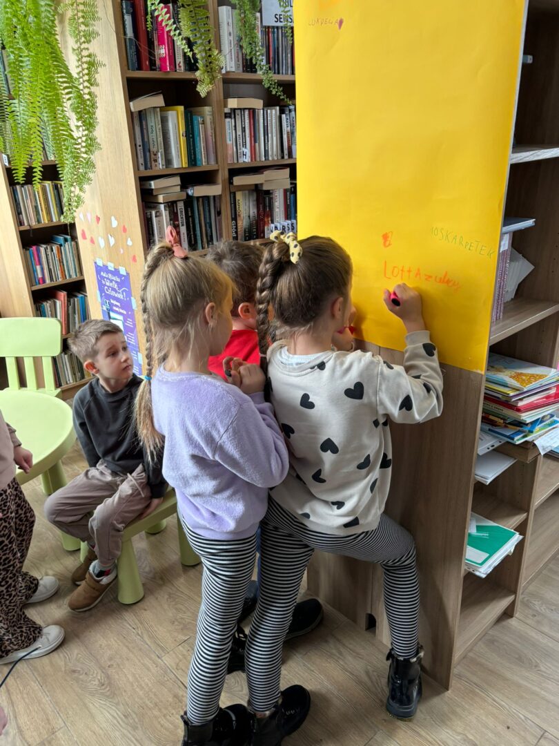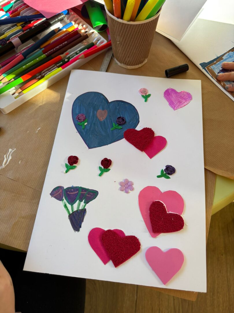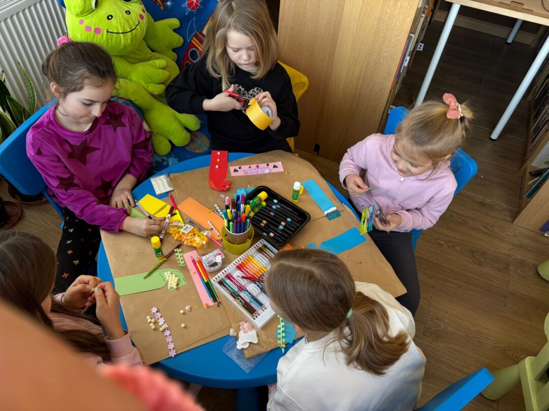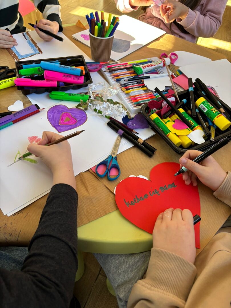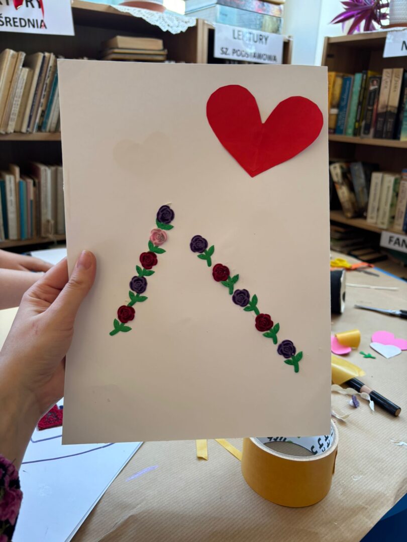 𝐏𝐢𝐚̨𝐭𝐞𝐤 był ostatnim dniem warsztatów – tworzyliśmy serca walentynkowe. Dzieci wykonały piękne prace i napisały życzenia dla swoich bliskich. Ozdobiliśmy też bibliotekę serduszkami, tworząc wyjątkową atmosferę. Uczestnicy brali udział w „𝑹𝒂𝒏𝒅𝒄𝒆