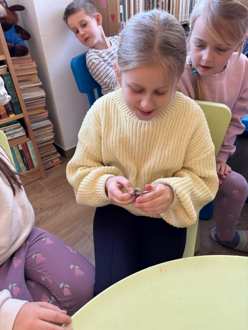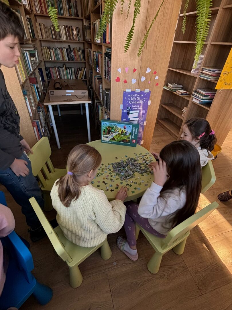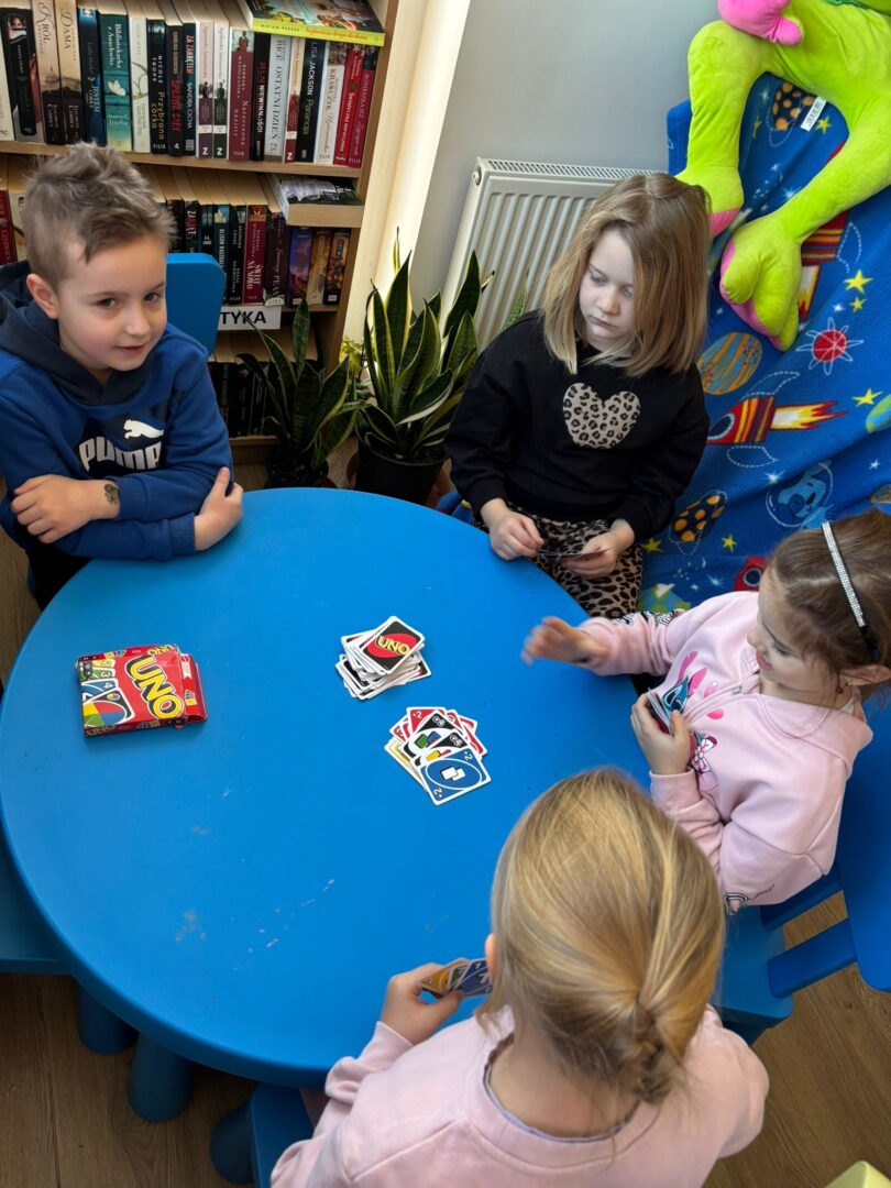 𝐒́𝐫𝐨𝐝𝐚 to gry i zabawy! Graliśmy w UNO, „Zgadnij kim jestem”, „Małpki” i wiele innych. Były zgadywanki, „głuchy telefon” oraz układanie puzzli. Mnóstwo radości i śmiechu towarzyszyło nam podczas zabawy w „Muzyczne krzesła”.